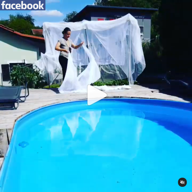 Dieses Jahr habe ich zum Drapieren nicht nur die Insektenschutznetze verwendet, sondern auch noch aus meiner Stoffrestekiste einige Vorhangstoffe mitverwendet. Vom Aufhängen hab ich Euch ein kleines Video gemacht, das findet Ihr auf meinem Instagram und Facebook Profil. Klickt einfach auf´s Bild.