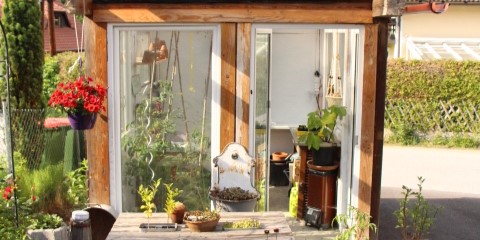 Nachdem wir unser kleines Häuschen am Stadtrand von Graz umgebaut hatten, türmten sich Reste von Baumaterialien und „Abfälle“ im Garten. Wenn ich Abends durch unsere neue, 8 Meter breite Einfahrt nach Hause kam, konnte ich den Anblick von Holzstapeln, alten Fenstern und Gerüstteilen irgendwann nicht mehr ertragen. Andererseits fand ich, waren die Materialien auch zu wertvoll um sie einfach zu entsorgen. Für ein DIY Glashaus für Pflanzen waren sie genau richtig.