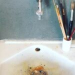 Auch hier wurden Abfälle vom Hausumbau aber auch Verpackungsmaterial (zwei Schränke die wir bestellt hatten, waren z.B. in dünne Spanplatten verpackt) als Baumaterial verwendet. Um die verschiedenen Materialien (Rigips und Holz) vor Feuchtigkeit zu schützen, aber auch um ein ruhigeres Bild im Innenraum zu erzeugen, haben wir alles mit weißer Ölfarbe gestrichen. Ölfarben haben hier den Vorteil, dass man einfach über alle Materialen (inkl. Metall) drüber gehen kann und es außerdem biologische gibt, die für Gewächshäuser verwendbare sind.