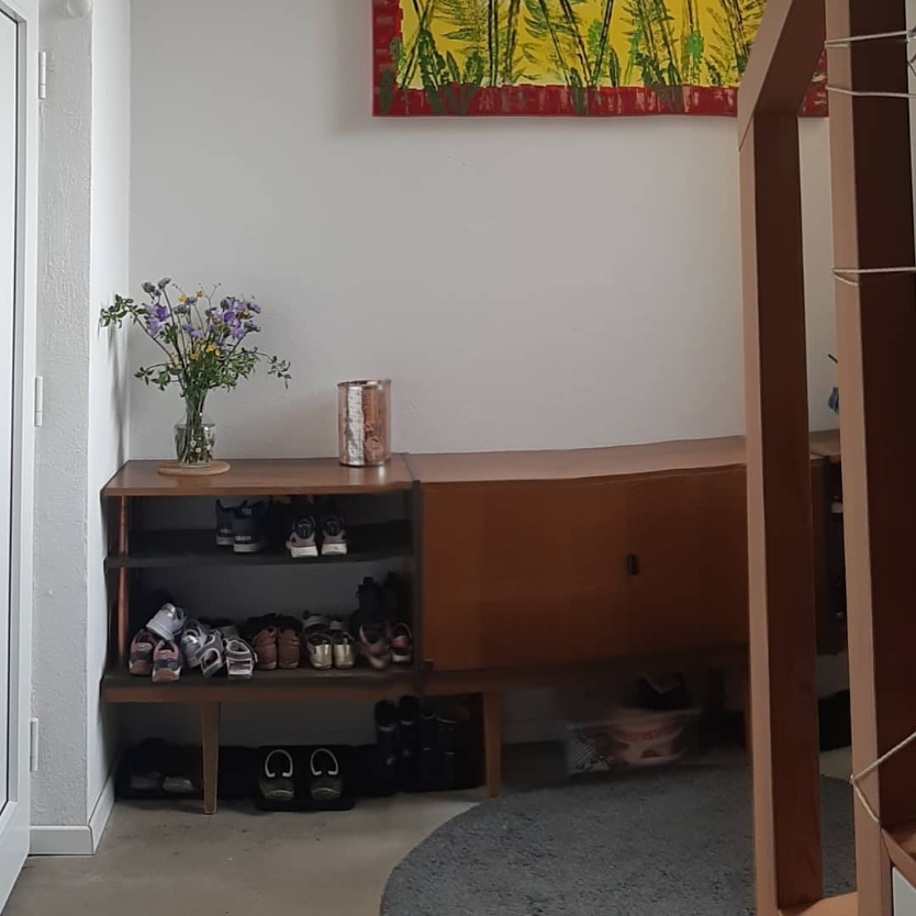 Als wir sie aber an die Wand hielten, ragte sie uns zu tief in den Raum bzw. in die Stiege und so haben wir sie anderweitig verwendet. Bei drei Kindern, findet sich immer ein Platz dafür 😉