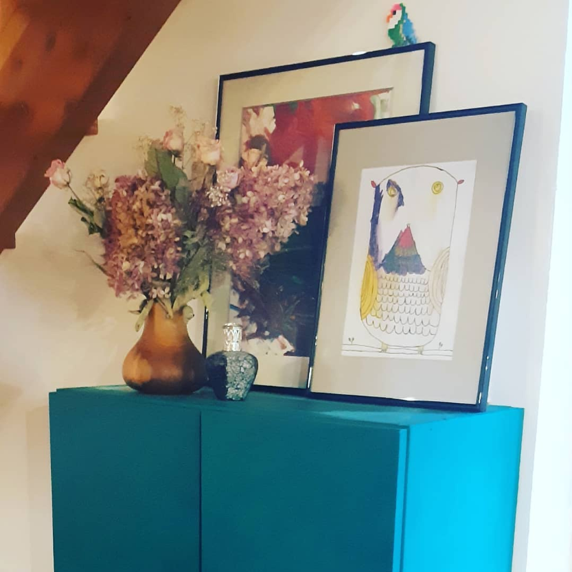 Als ich auch nach einigen Stunden vor dem PC keine Alternative mit einer geringeren Tiefe gefunden habe, hatten wir beschlossen die Bilder einfach direkt mit Nägeln aufzuhängen. Wir waren ja auch mitten im Umbau und da war noch die Küche, die Böden im oberen Stock, das Bad, die Möbel und und und.
